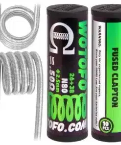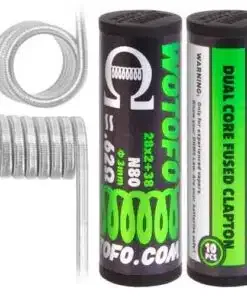 Need to wrap thin gauge wire around two or more thick cores to build a Fused Clapton coil. A fused Clapton helps provide a better user experience. Wotofo offers nichrome 80 Dual Core Fused Clapton coils with a 0.28-ohm resistance.